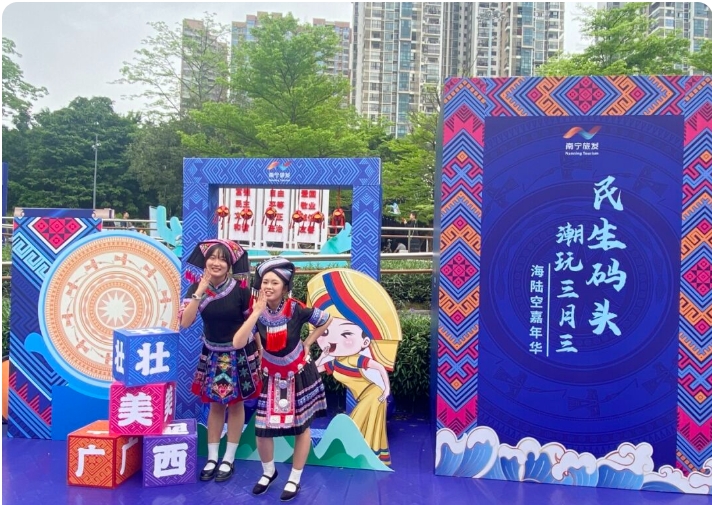 這些活動(dòng)盡顯濃郁民俗風(fēng)情,代表了壯族人民堅(jiān)韌不拔的精神和勇敢、樂(lè)觀、向上的生活態(tài)度,生動(dòng)展現(xiàn)了中華民族大團(tuán)結(jié)、民族團(tuán)結(jié)一家親的深厚情誼。圖為集團(tuán)公司職工參加社區(qū)活動(dòng)拍攝的“三月三”活動(dòng)照片。