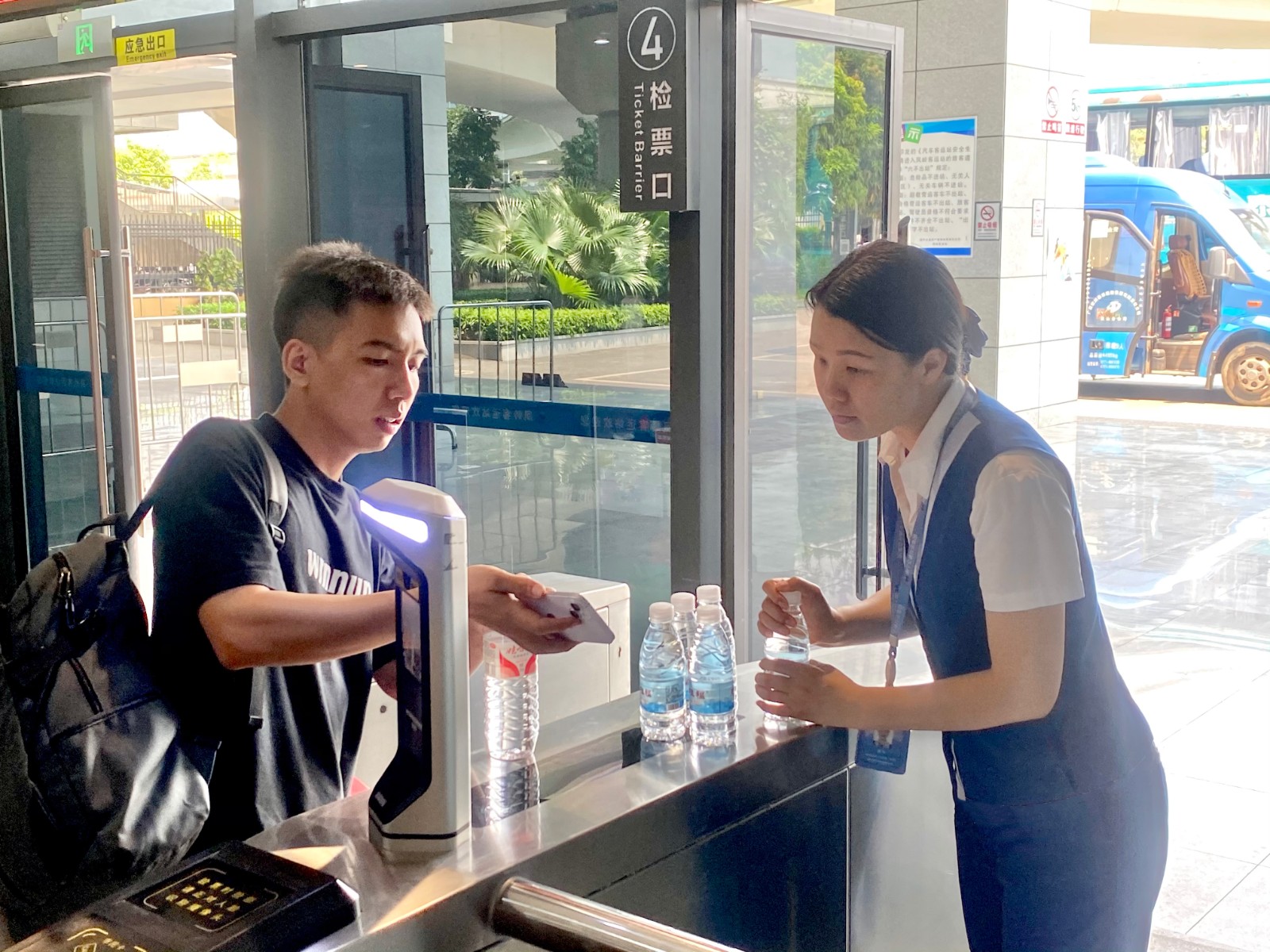 售票員微笑面對乘客,耐心為旅客答疑解惑,幫助旅客提供最佳出行選擇;“三品”檢查員認真做到“逢包必檢、逢液必查”,保障旅客安全出行;檢票員嚴格查驗車輛及駕駛員證件,熱情招呼旅客檢票乘車,為來往的旅客做好乘車引導服務;安全檢驗員認真做好車輛發(fā)車前安全設(shè)施設(shè)備檢查及發(fā)車前安全告知工作。