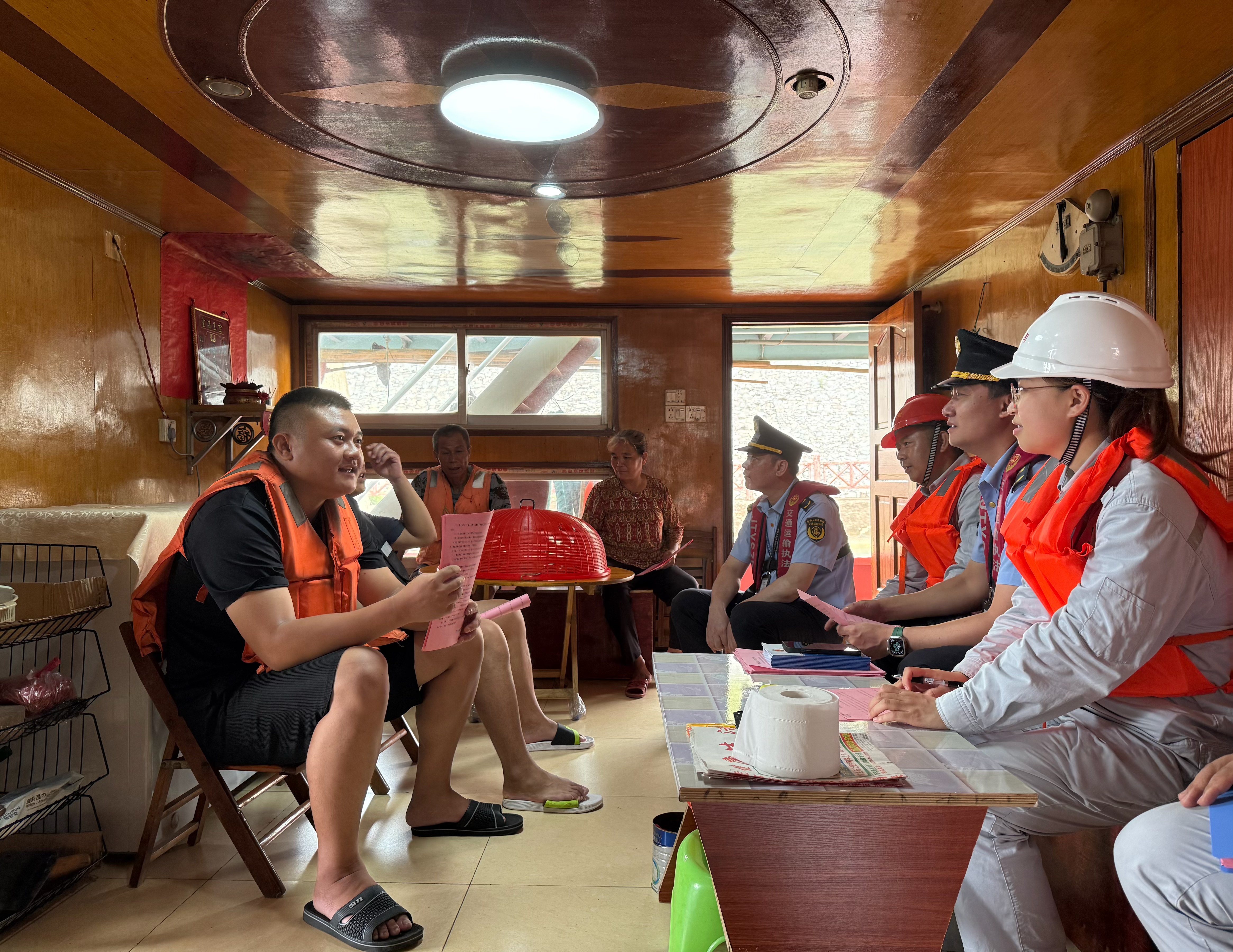 活動中,邕寧樞紐船閘與執(zhí)法大隊相關(guān)工作人員陸續(xù)登上待閘船舶,手持《船閘安全生產(chǎn)宣傳單》,結(jié)合《廣西船閘管理辦法》《中華人民共和國航道法》《中華人民共和國消防法》等法規(guī),用通俗易懂的語言向船民講解船舶航行安全、消防設(shè)備使用等內(nèi)容,“過閘過程中遇到風(fēng)險及時聯(lián)系我們”“船上用電要規(guī)范”等貼心提醒,讓安全知識入腦入心,活動累計向船民發(fā)放安全宣傳資料50余份,助力提升船民安全生產(chǎn)意識。